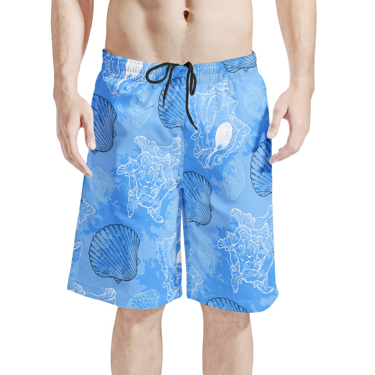 Men’s All Over Board Shorts – Blue Seashell Ocean
