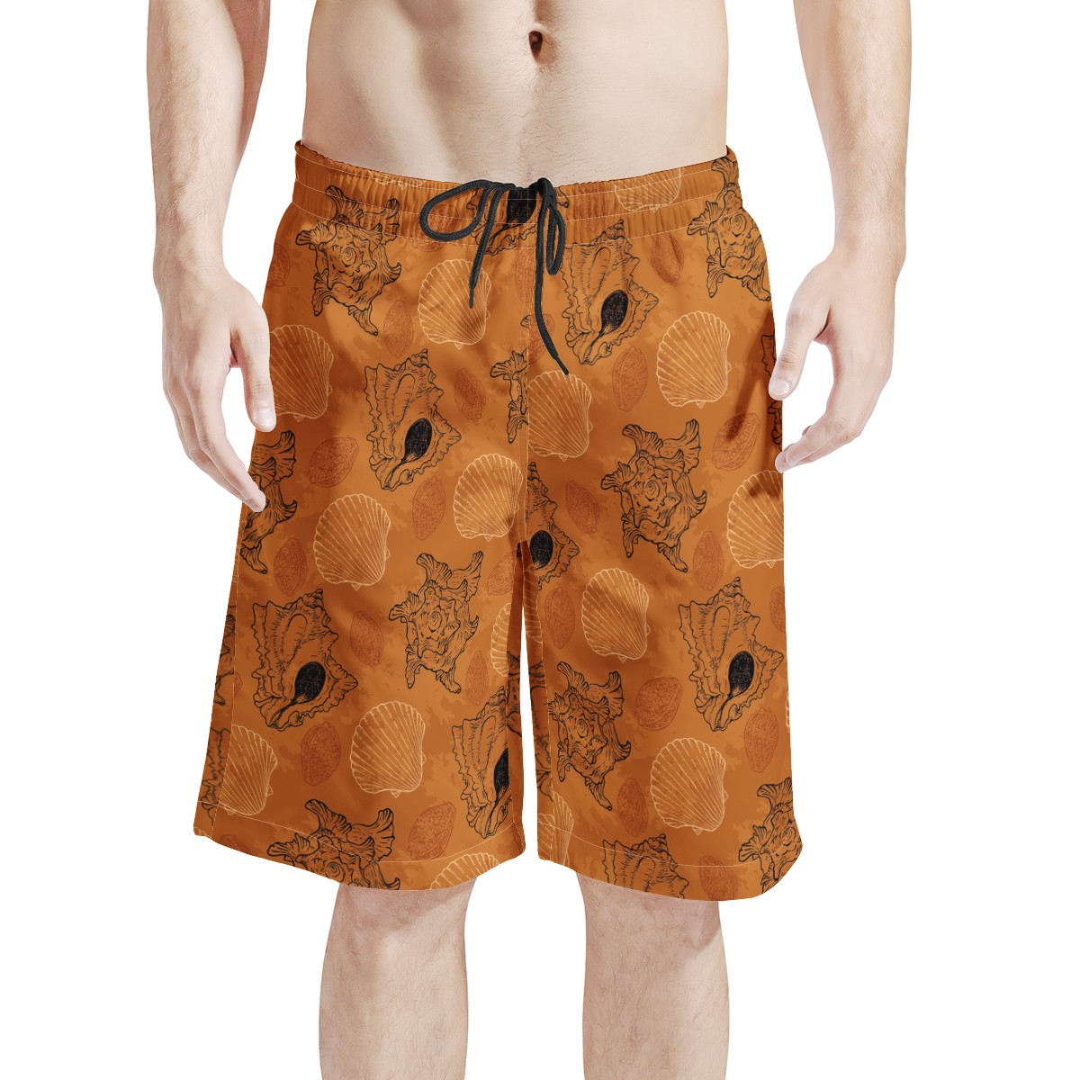 Men’s All Over Board Shorts – Sea Shell Ocean Design in Orange