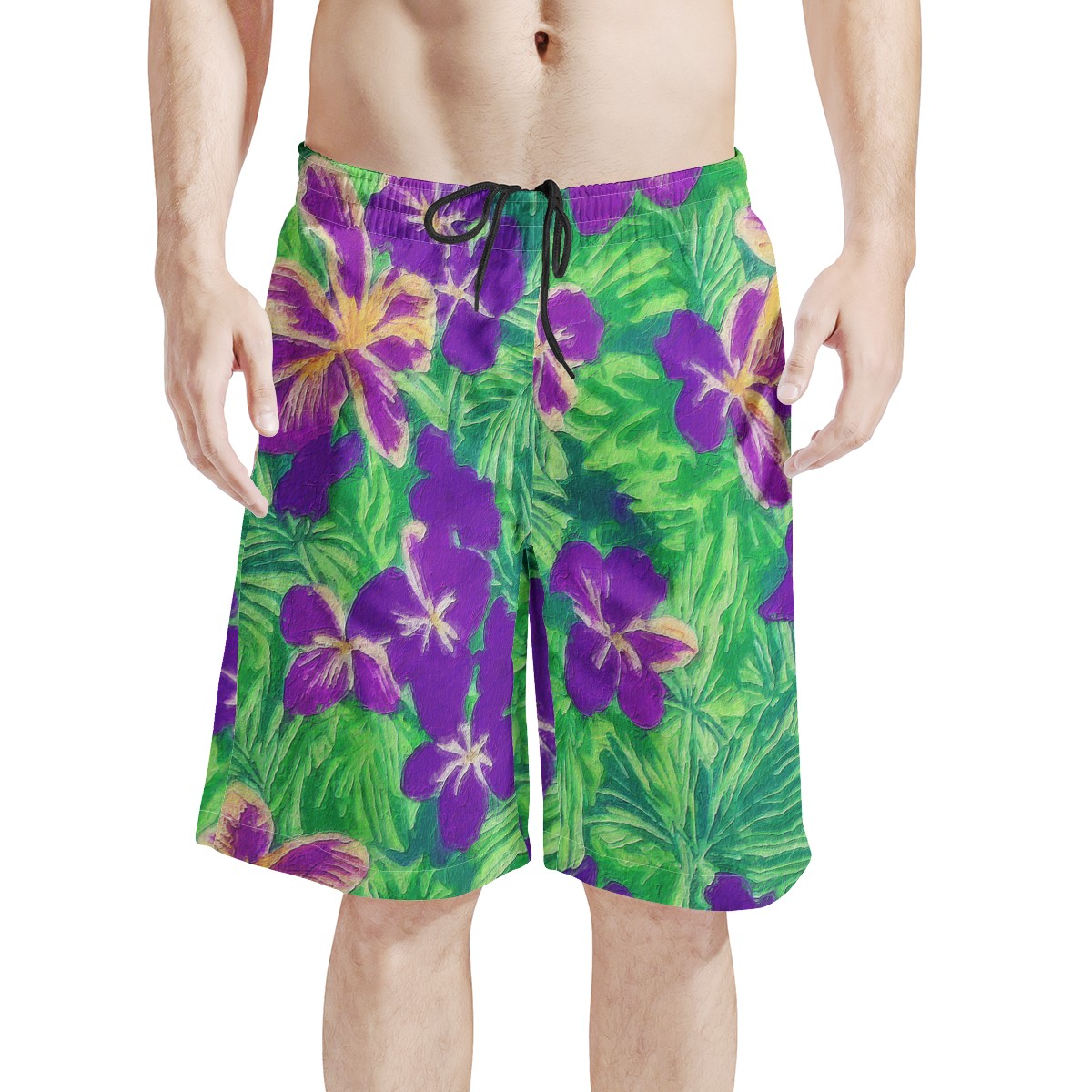 Men’s Board Shorts | Men’s All Over Print Board Shorts – Blue Flag Iris – Size S up to 3XL